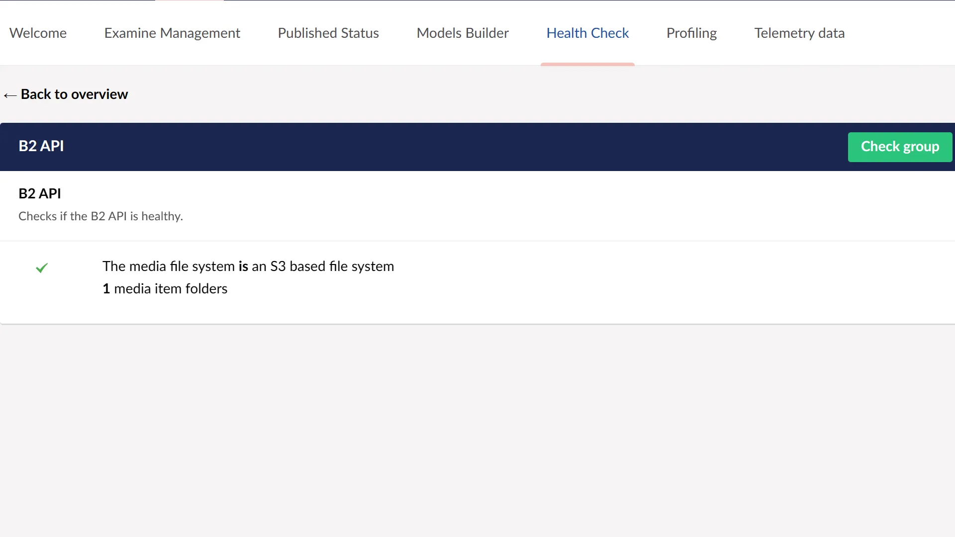 The package includes a suite of health checks to verify the connection to the B2 bucket.